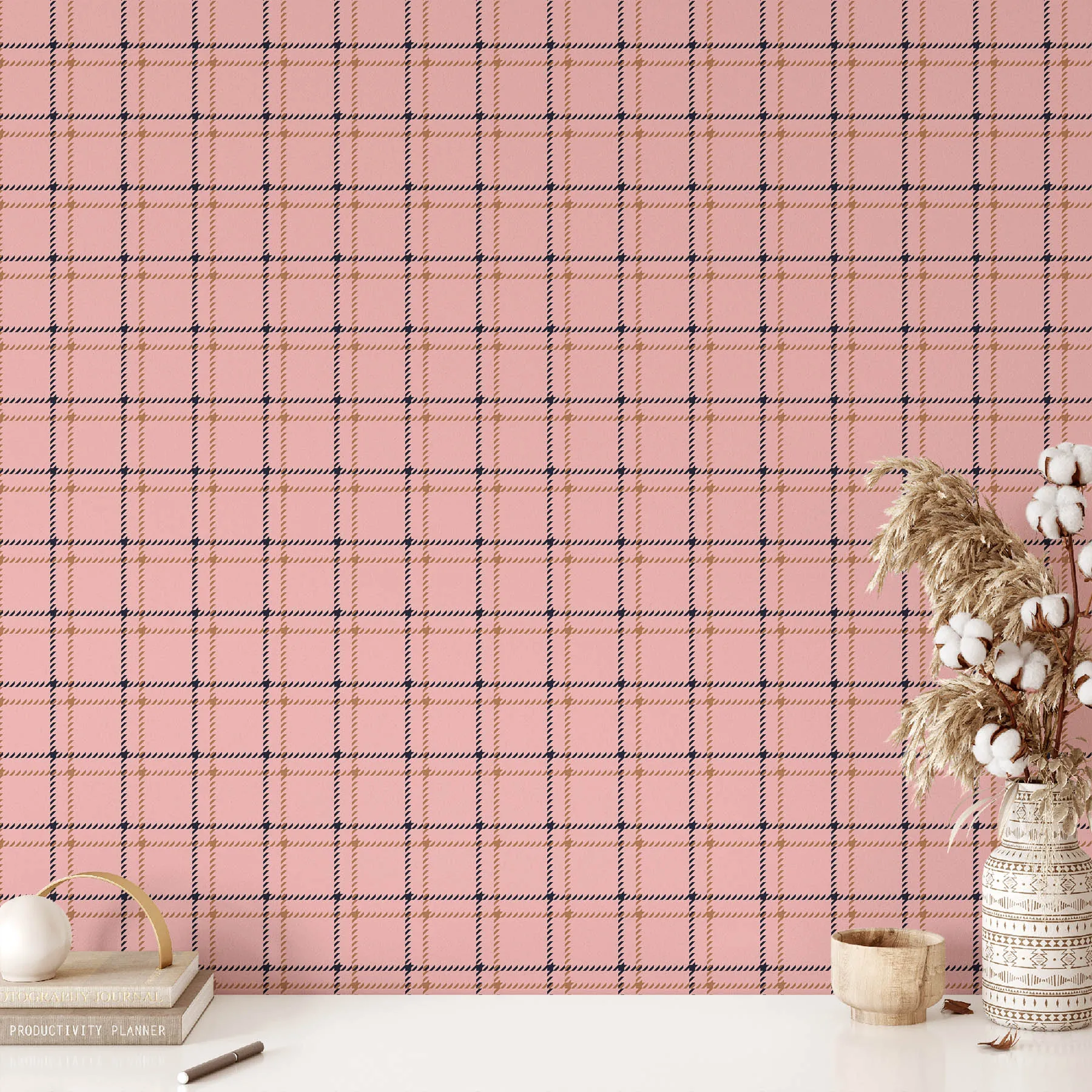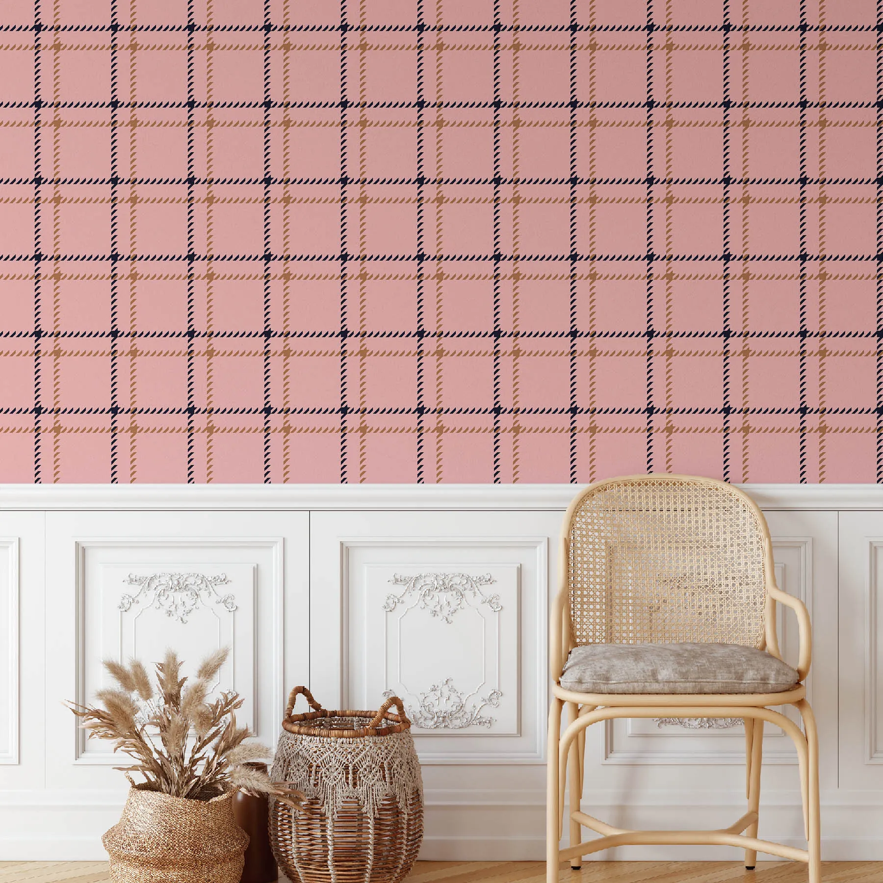 A stylish plaid pattern in soft pink tones.