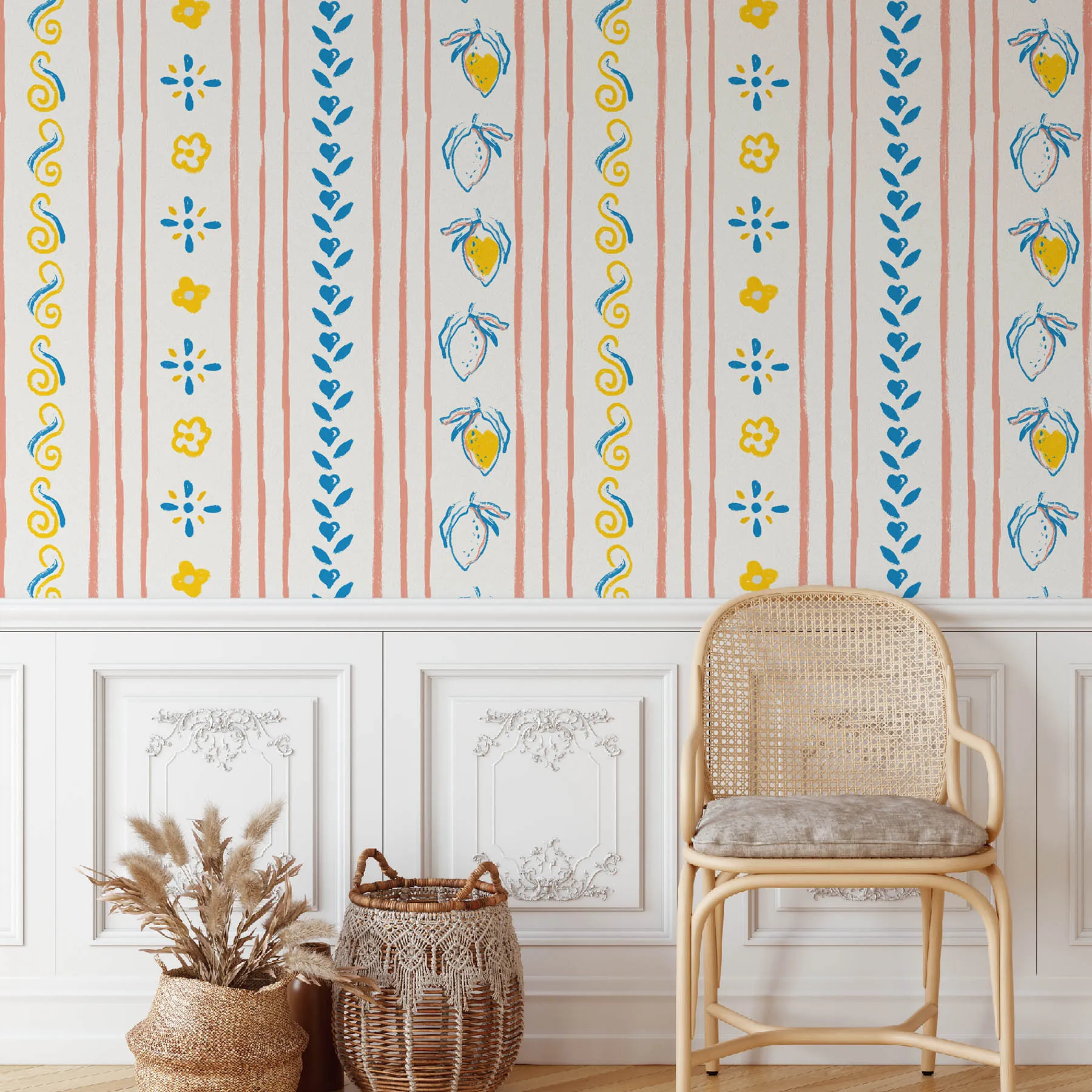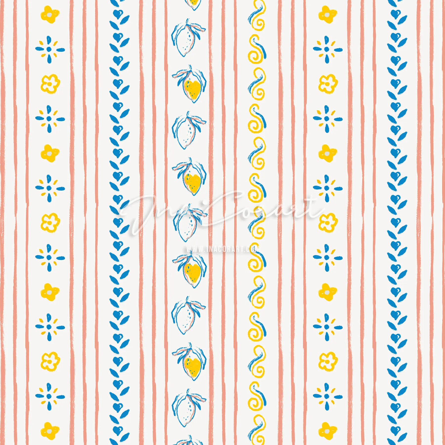 Colorful Summer Striped and Lemon Borders Seamless Pattern