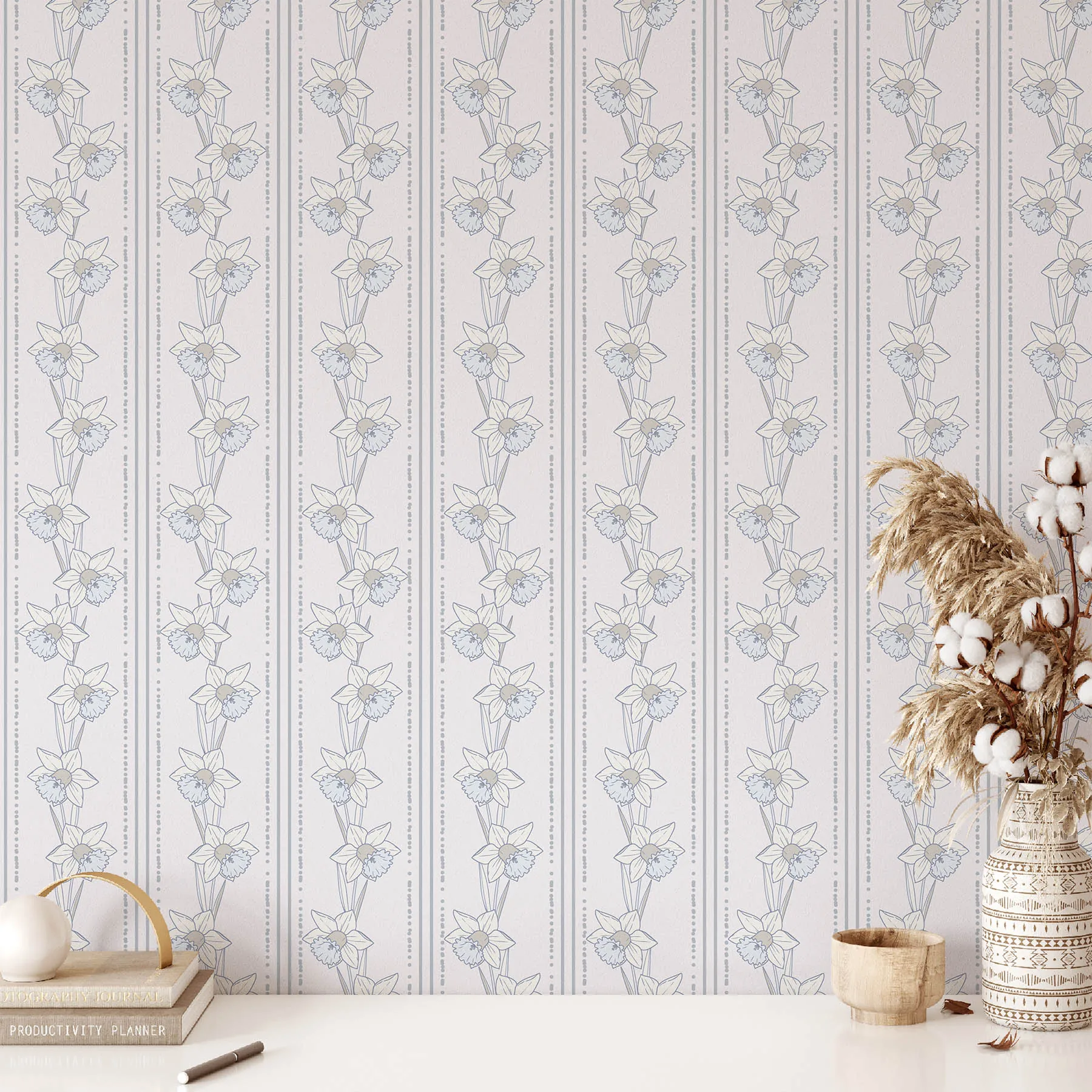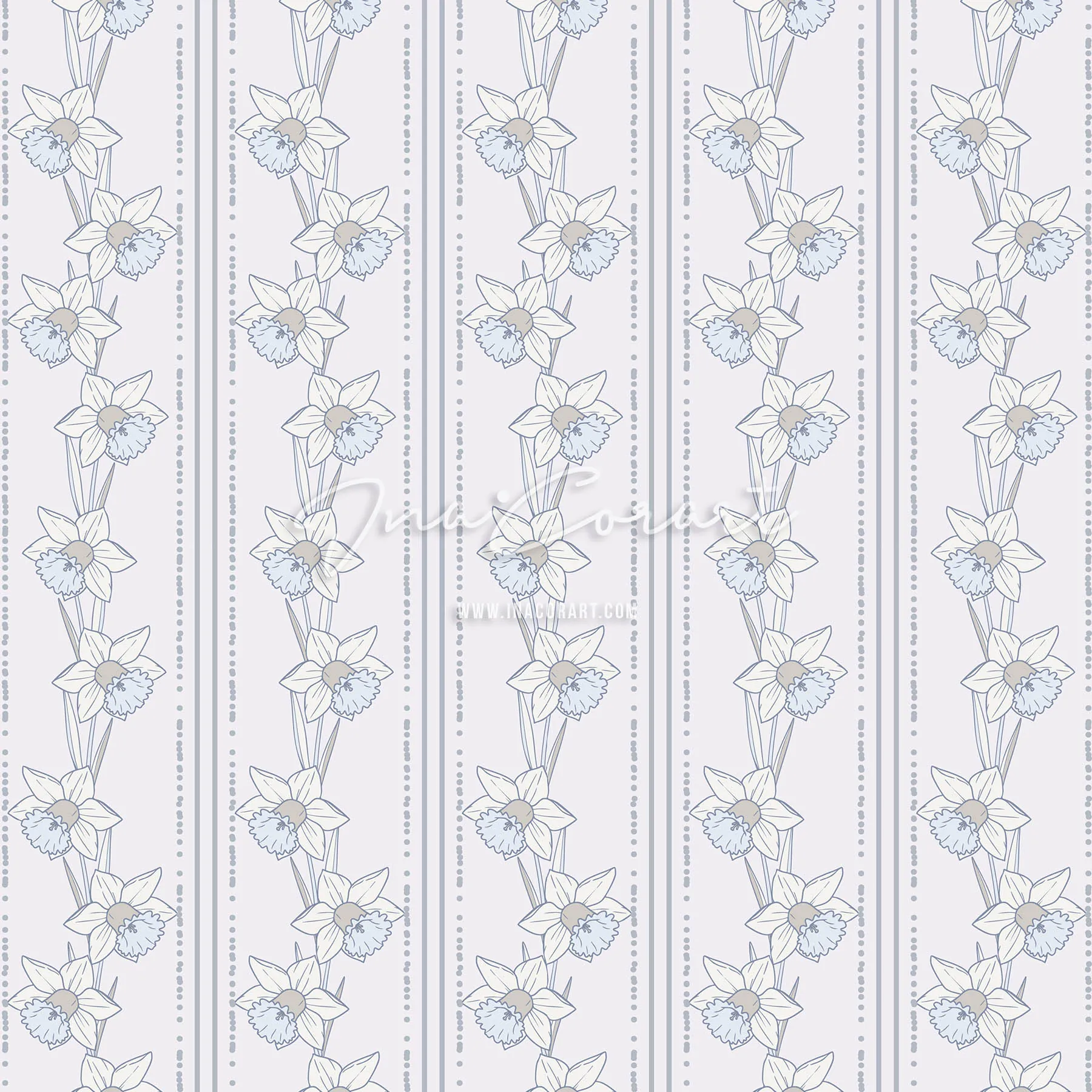 This seamless pattern showcases beautiful daffodils in soft hues, perfect for adding a touch of nature to your designs. Ideal for textiles, wallpapers, and more.