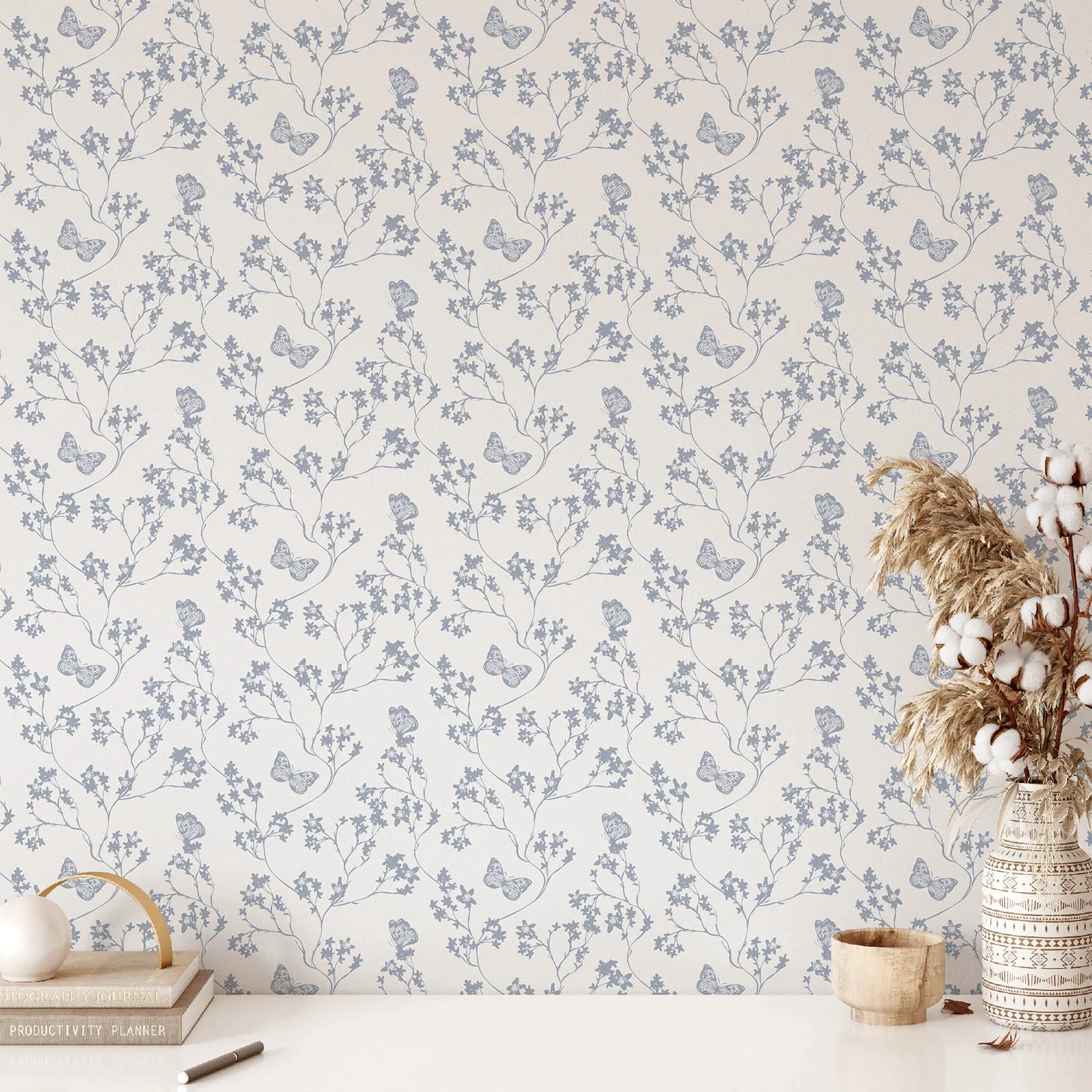 This delicate seamless pattern showcases beautifully intertwined butterflies and floral elements, perfect for a variety of design projects. The soft colors and intricate details create a serene and inviting atmosphere, making it ideal for textiles, wallpapers, and more.