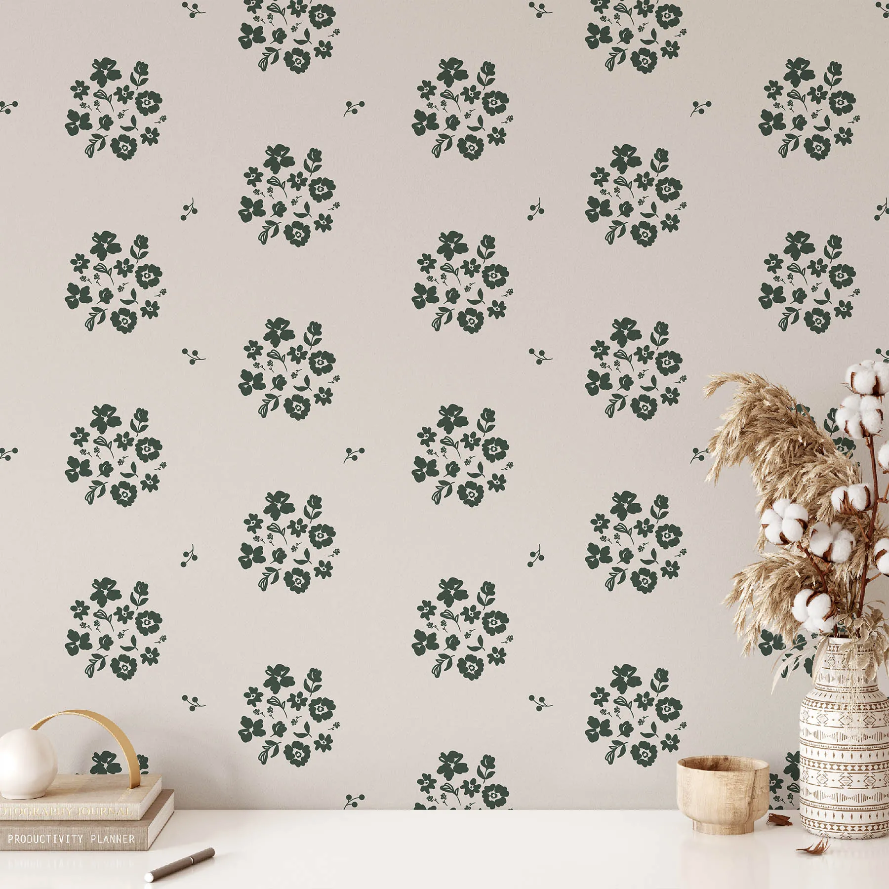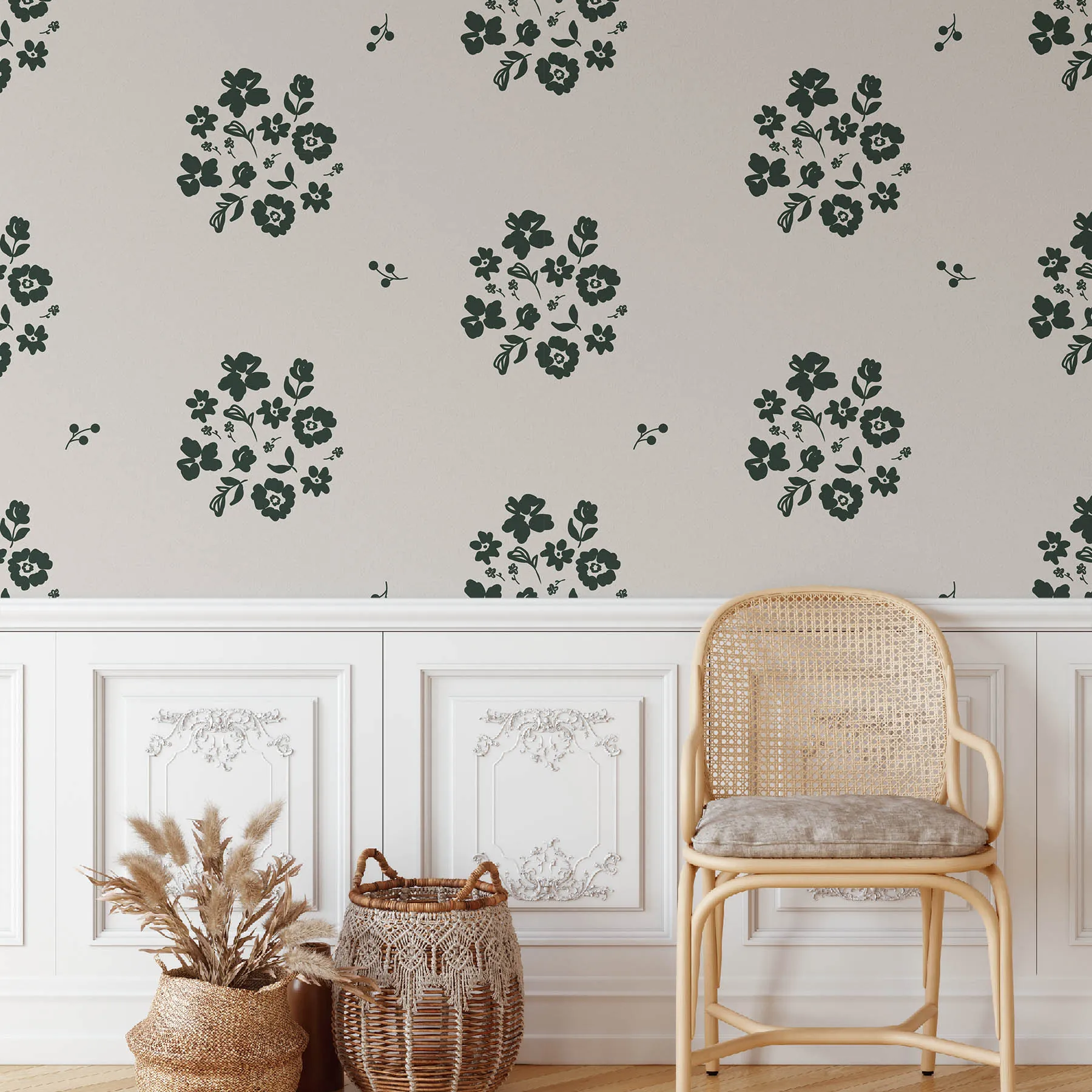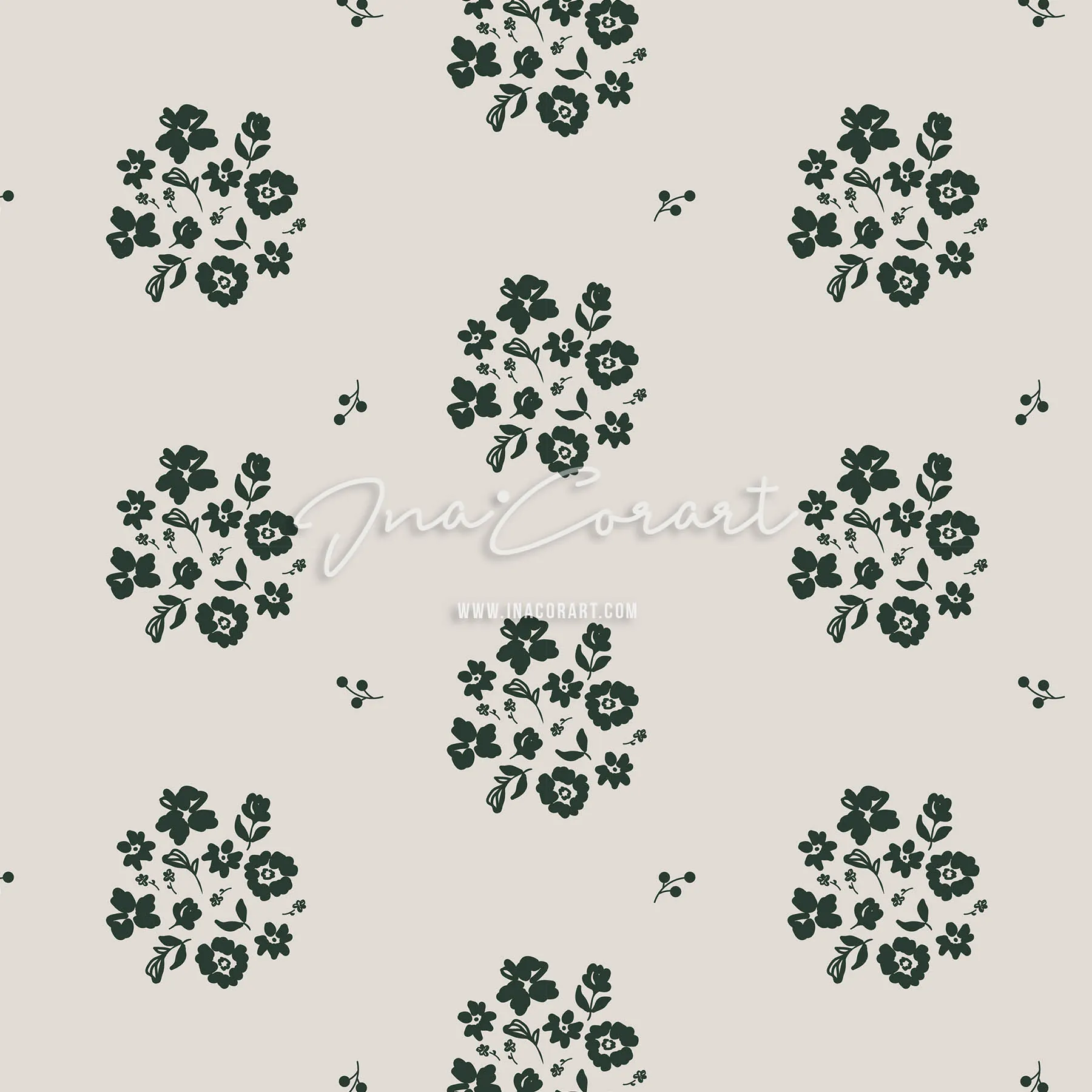 This elegant seamless pattern showcases a variety of dark green flowers on a soft beige background. Perfect for textiles, wallpapers, and home decor, this design brings a touch of nature indoors.
