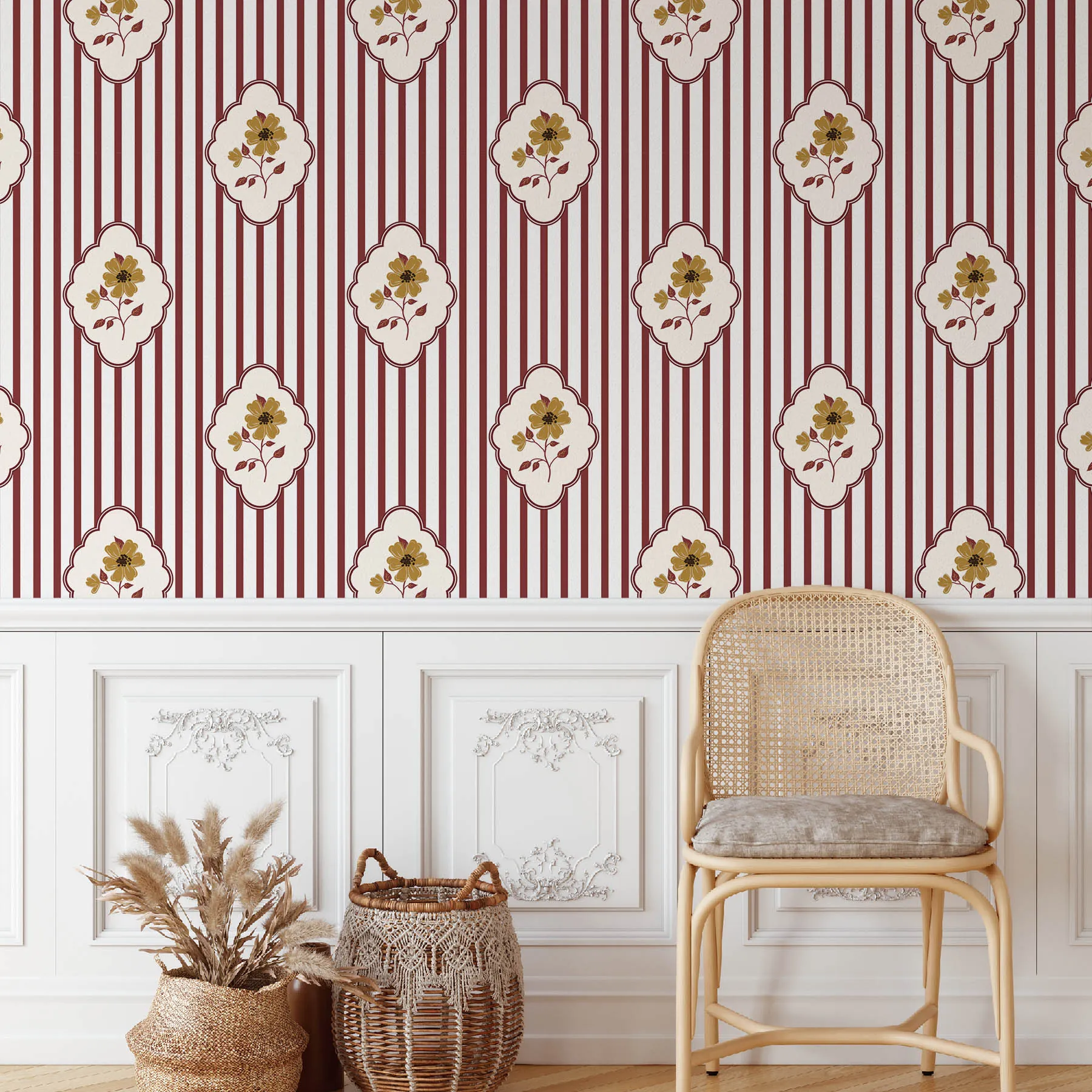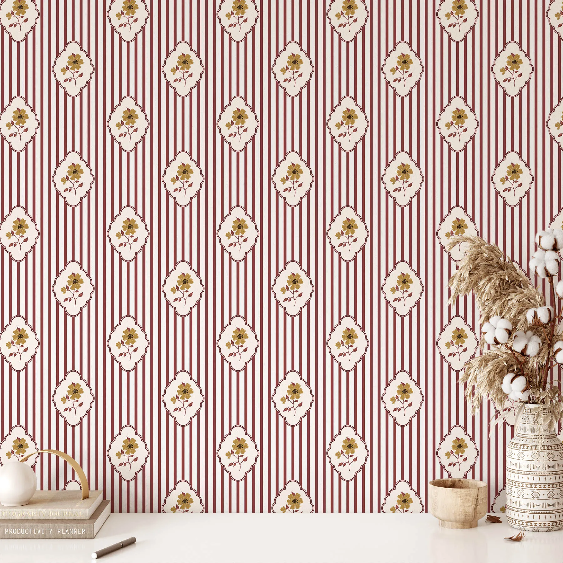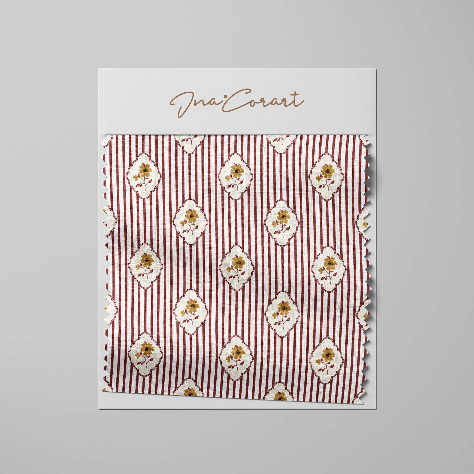 This seamless pattern features delicate floral motifs set against a backdrop of bold stripes, creating a harmonious blend of elegance and charm. Perfect for textiles, wallpapers, and various craft projects, this design brings a touch of nature indoors.