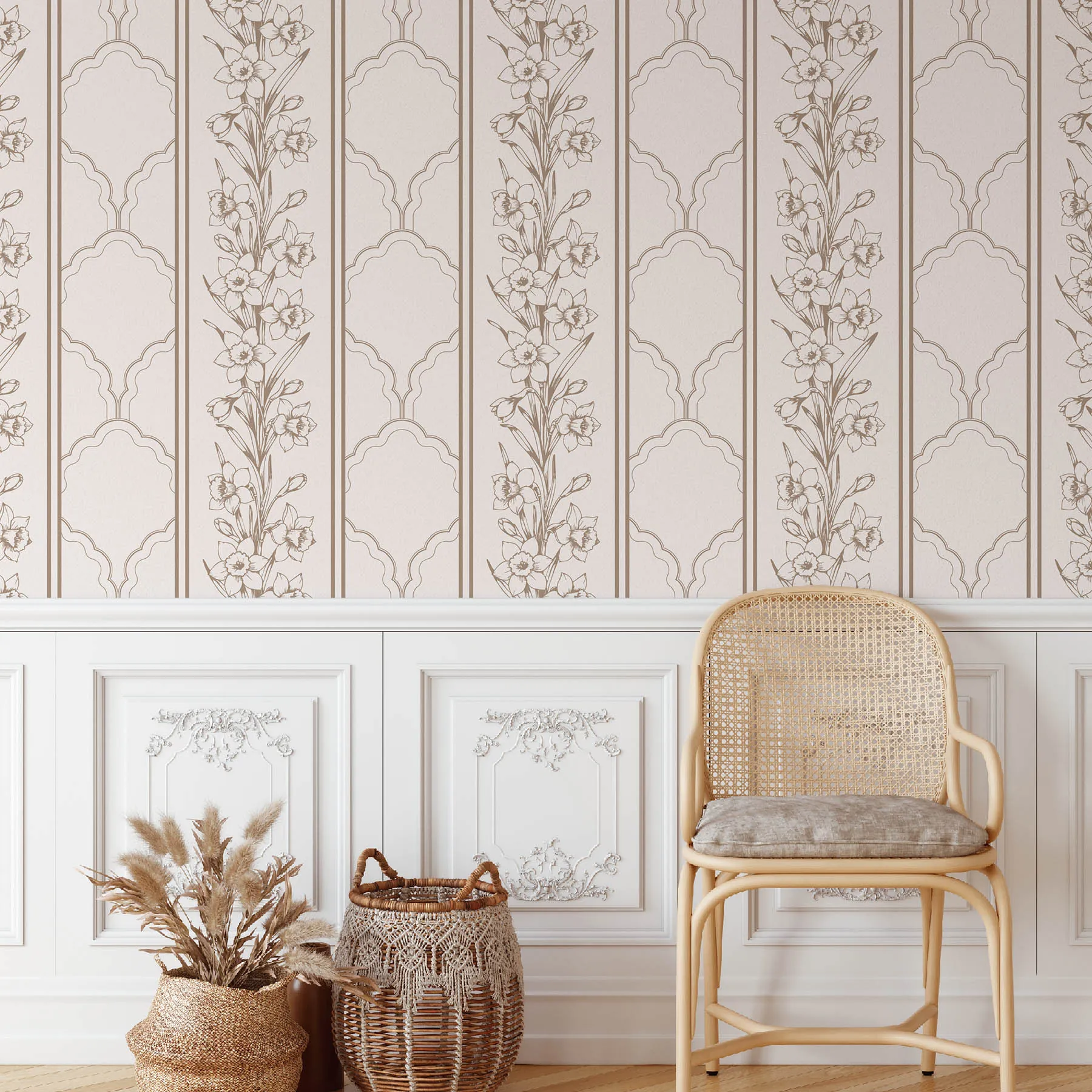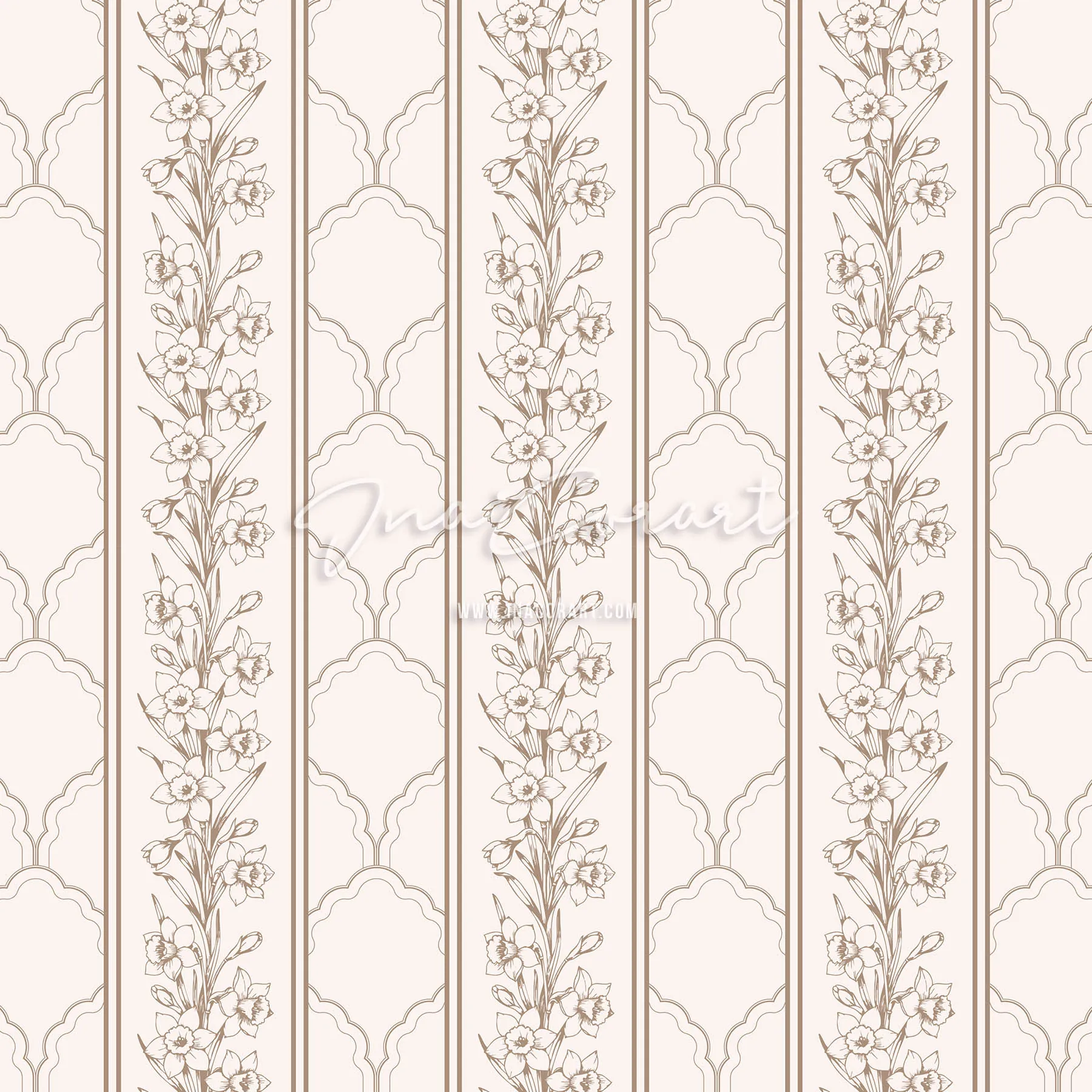 This seamless pattern showcases delicate floral motifs intertwined with elegant geometric shapes, perfect for adding a touch of sophistication to any project. Ideal for textiles, wallpapers, and home decor, this design brings nature’s beauty indoors.
