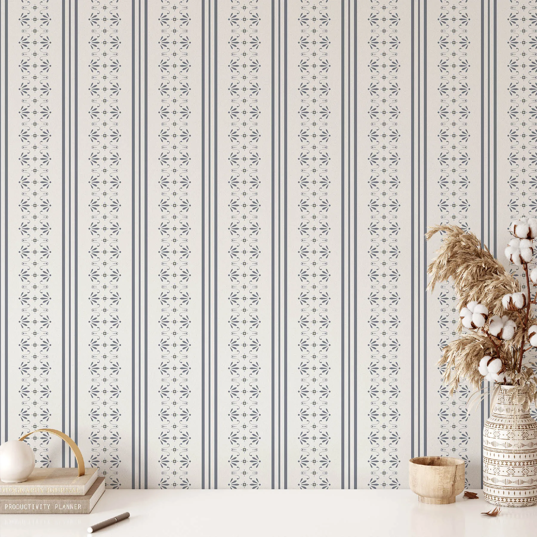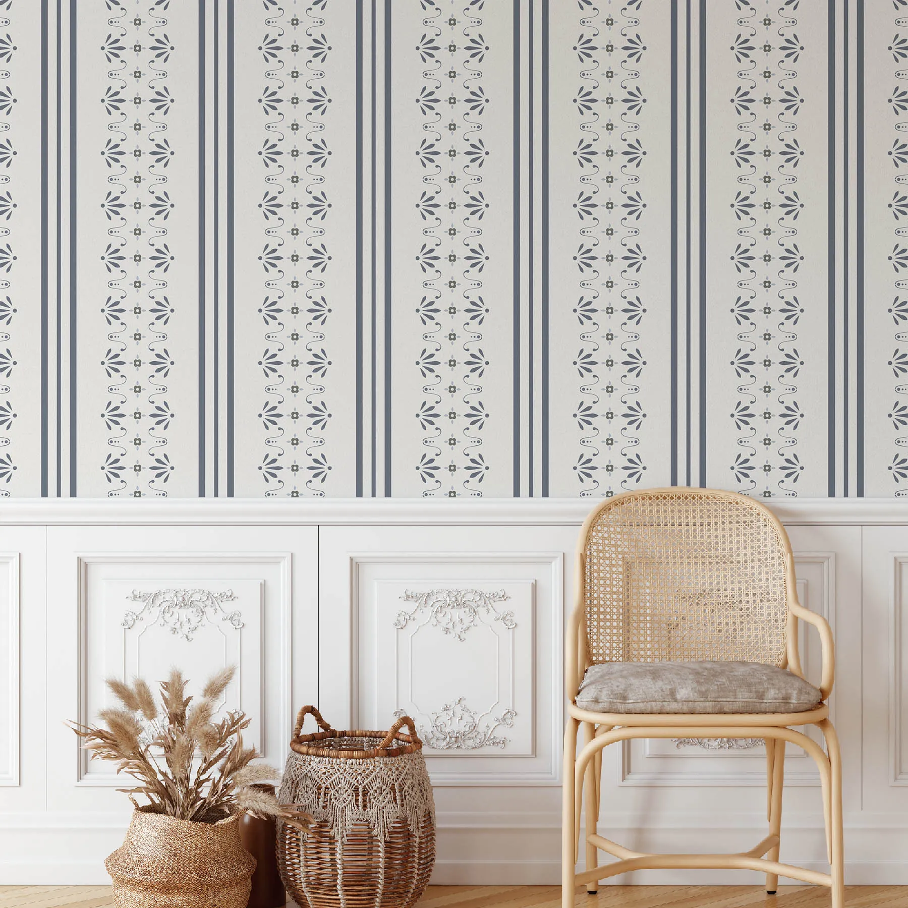 This elegant floral seamless pattern features intricate floral motifs intertwined with subtle stripes, perfect for adding a touch of sophistication to your designs.