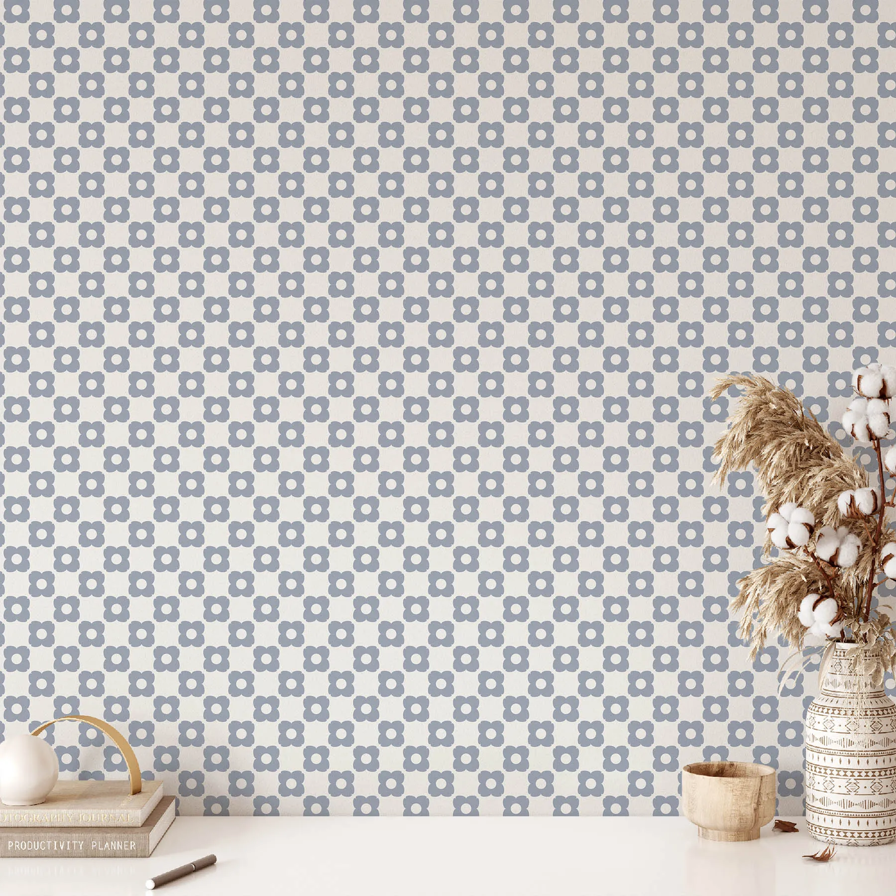 This charming floral seamless pattern features a repeating design of delicate flowers in soft blue tones against a clean white background. Ideal for textiles, wallpapers, and other creative projects, this pattern brings a touch of nature’s beauty into your designs.