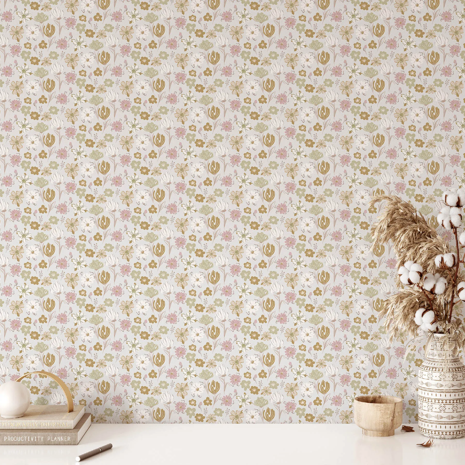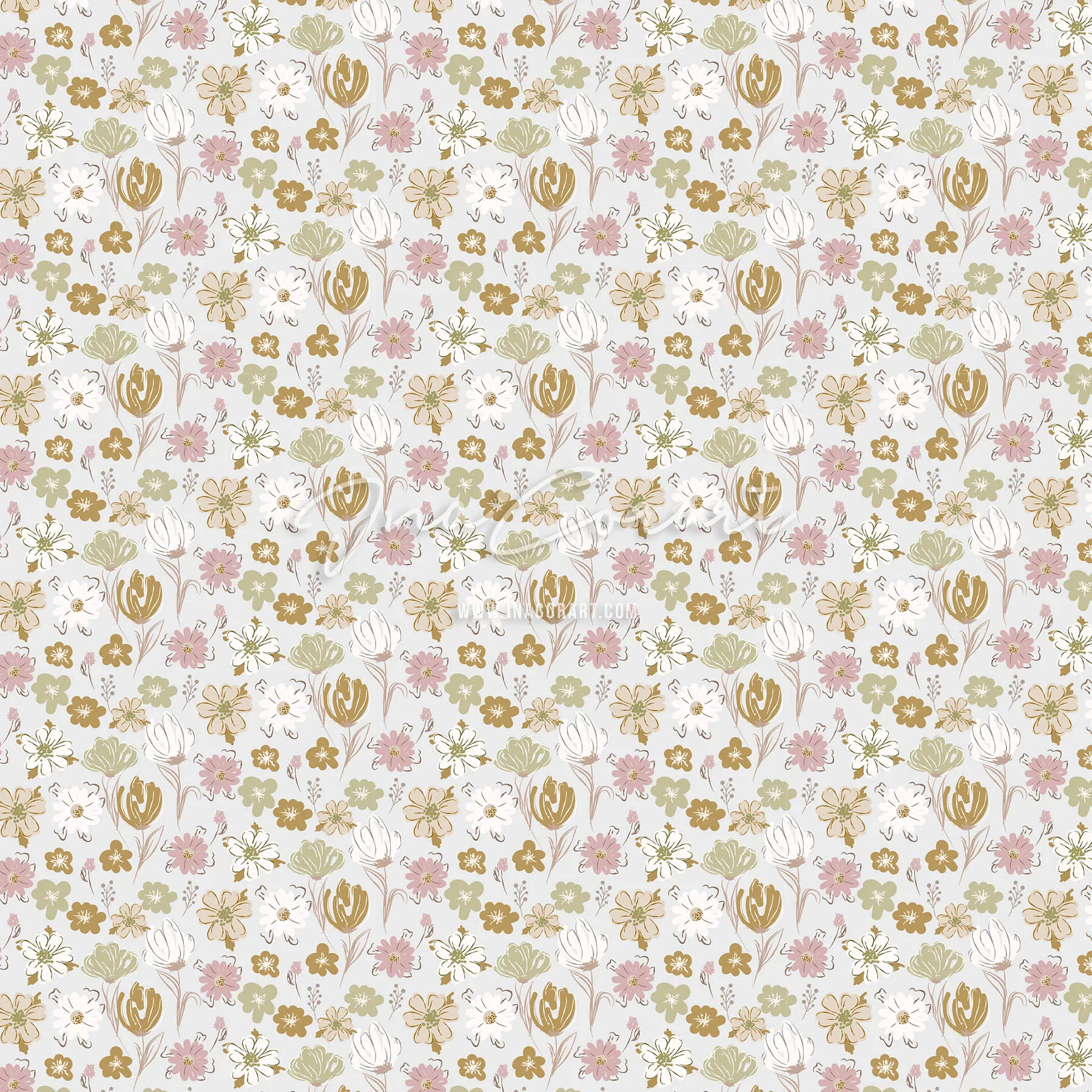 This seamless pattern features a variety of delicate flowers in soft hues of pink, green, and cream. Perfect for fabric, wallpaper, or any creative project that needs a touch of nature’s beauty.