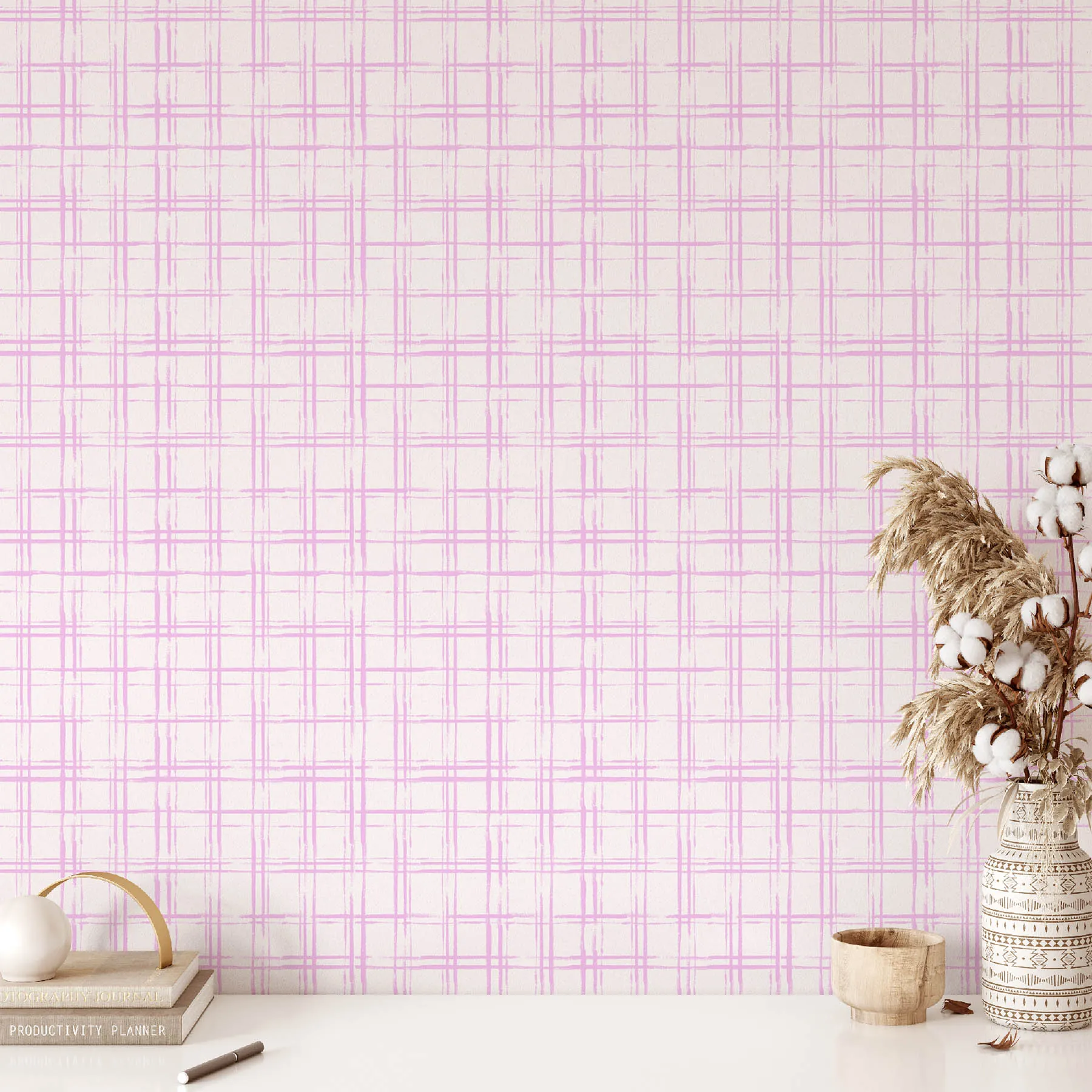 This seamless pattern features a delicate pink grid design on a white background, making it ideal for textiles, wallpapers, and digital projects. Its soft hues and simple lines create a soothing aesthetic, perfect for adding a touch of elegance to your creations.