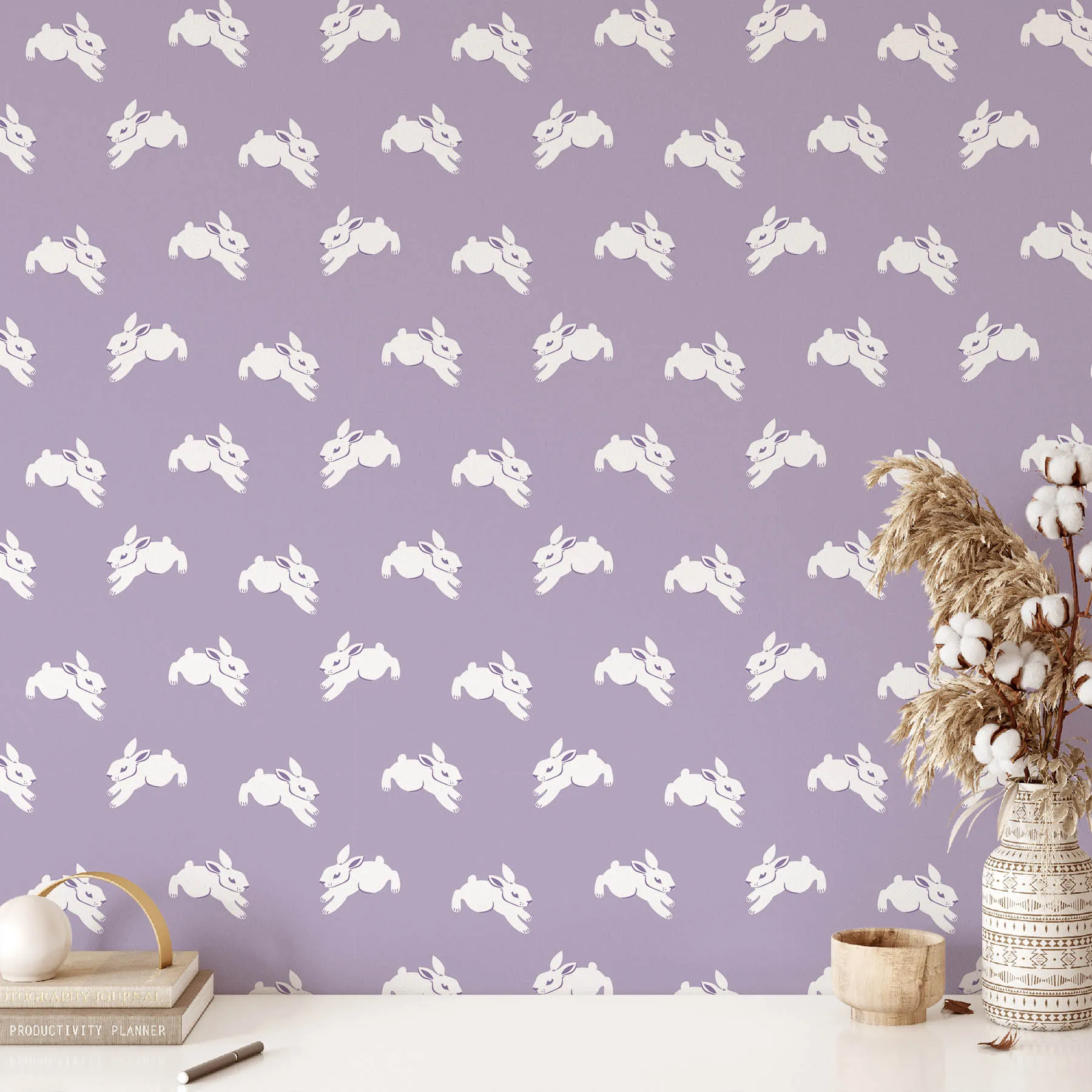 This delightful seamless pattern showcases charming bunnies in mid-leap against a soft lavender background. Perfect for spring-themed projects, children’s clothing, or home decor, this design adds a touch of whimsy and joy.