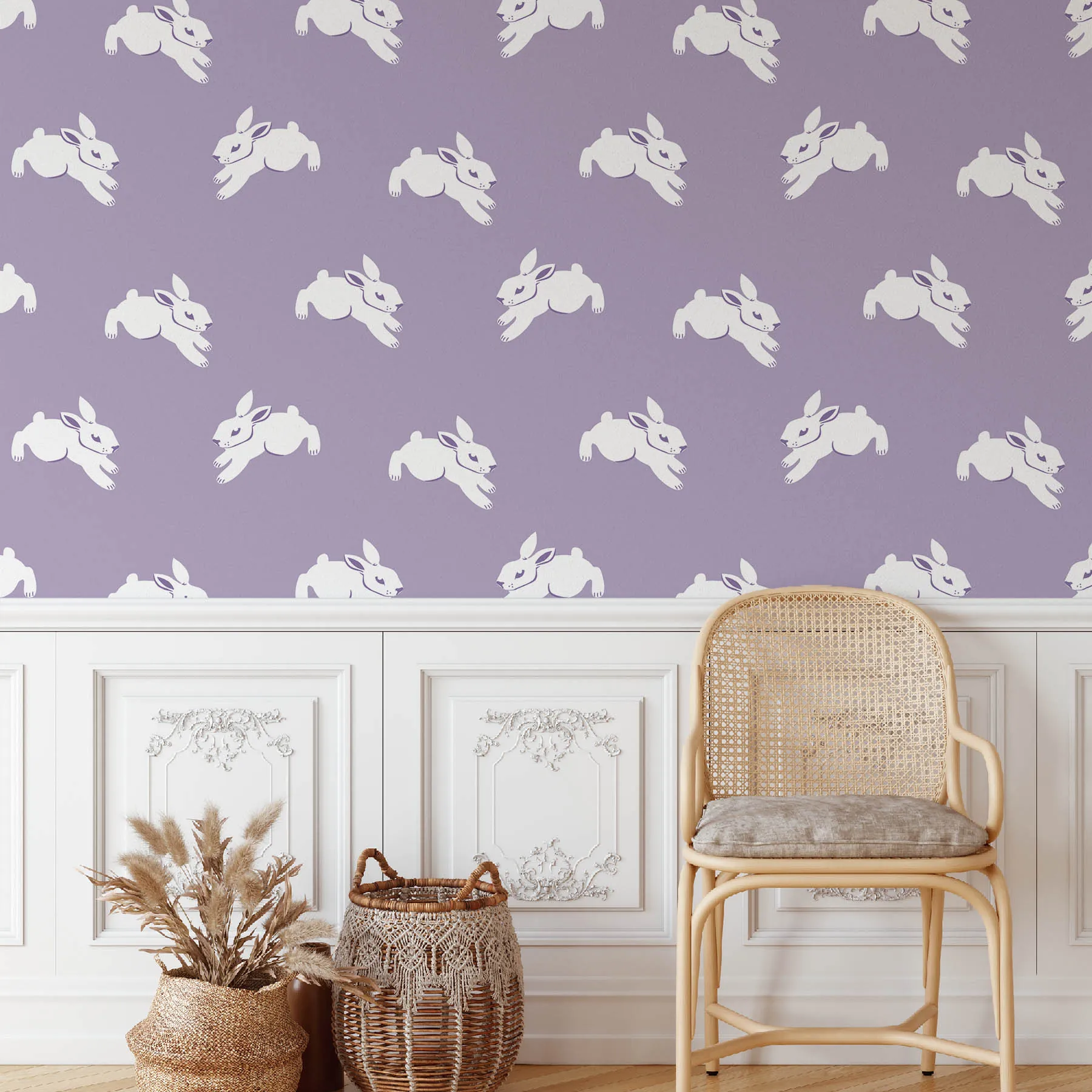 A whimsical pattern featuring playful bunnies.