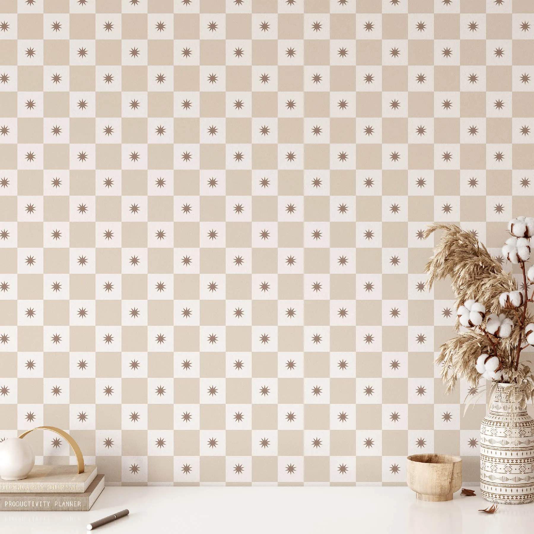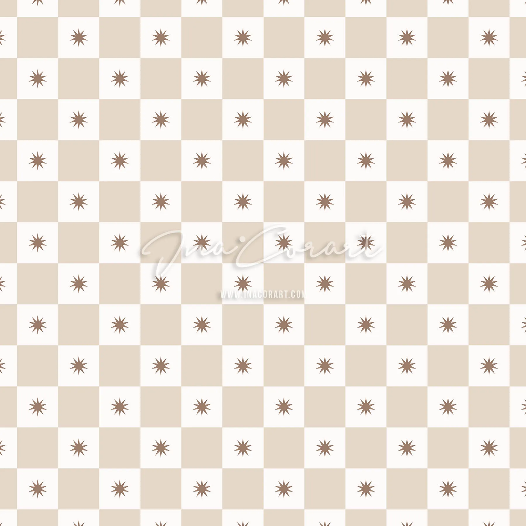 Starburst Beige Checkerboard Seamless Pattern