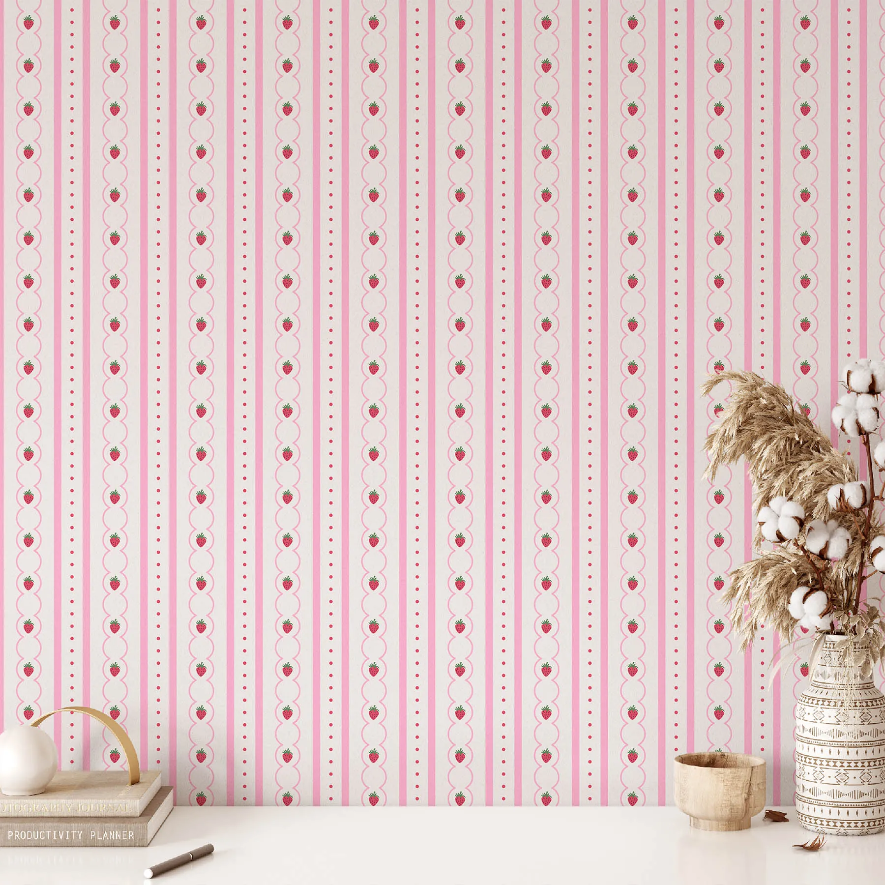 Strawberry Delight Stripes Seamless Pattern
