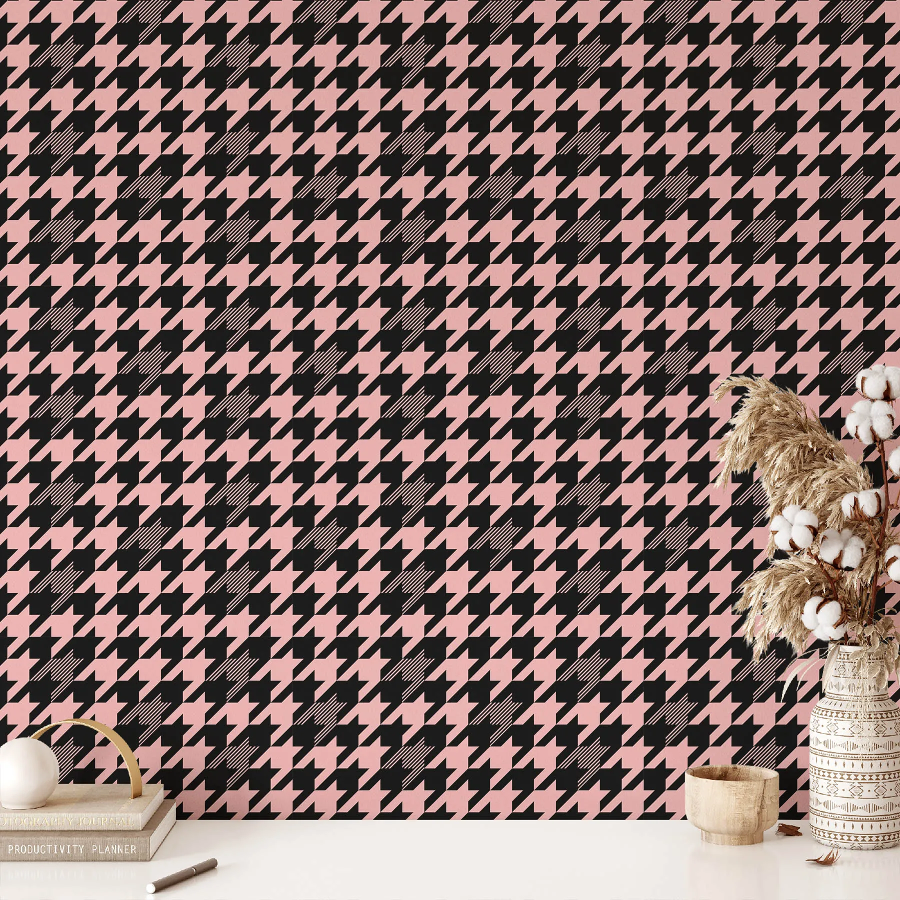 Stylish Black and Pink Houndstooth Seamless Pattern